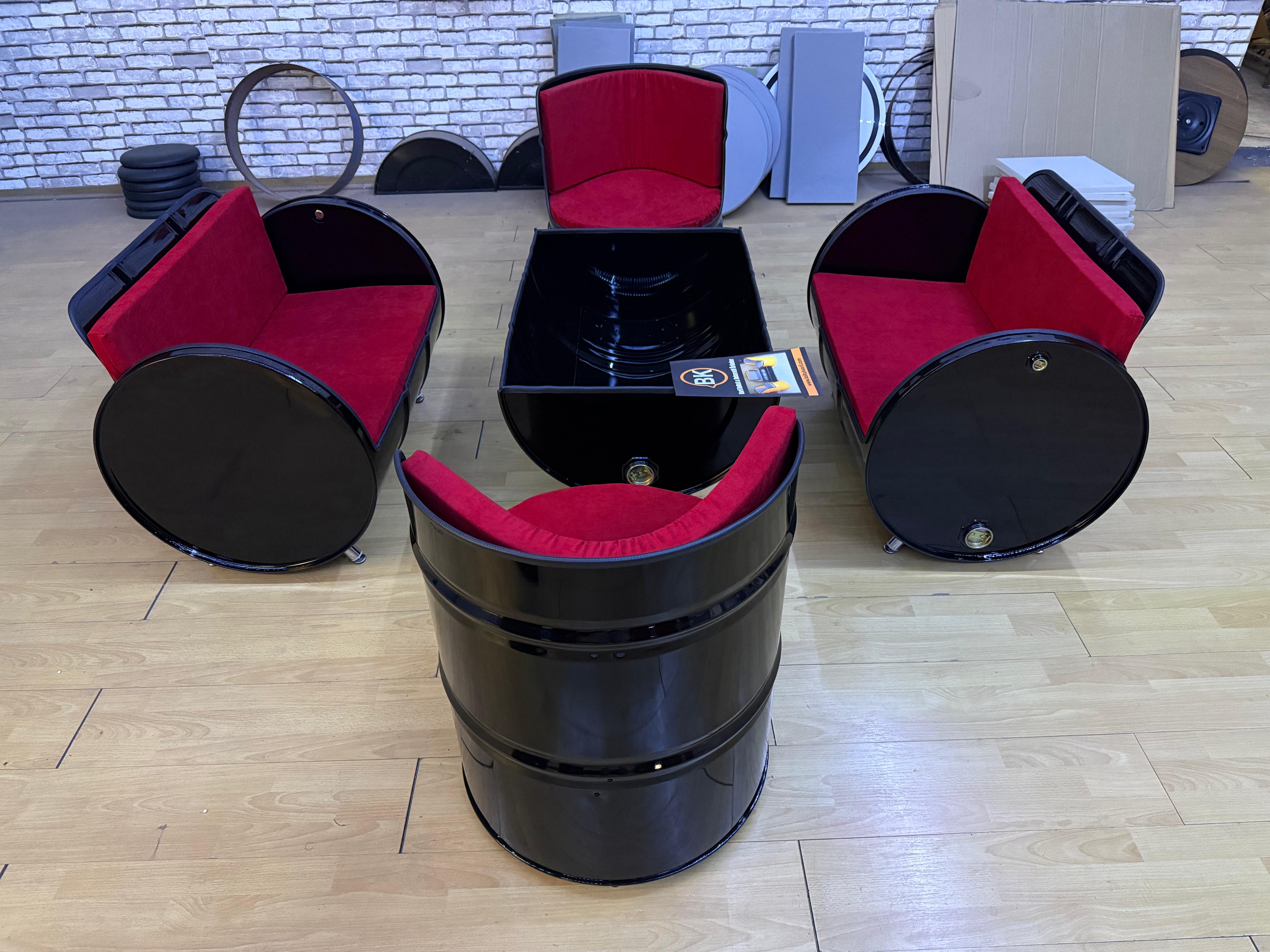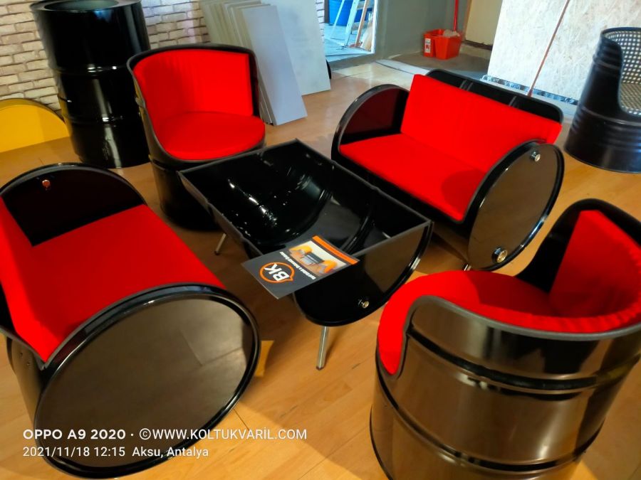 Varil Koltuk oturma takımı iki adet ikili, koltuk iki adet tekli koltuk ve bir adet sehpadan oluşmaktadır.(sehpa camsız şekil de gönderim yapılıyor)