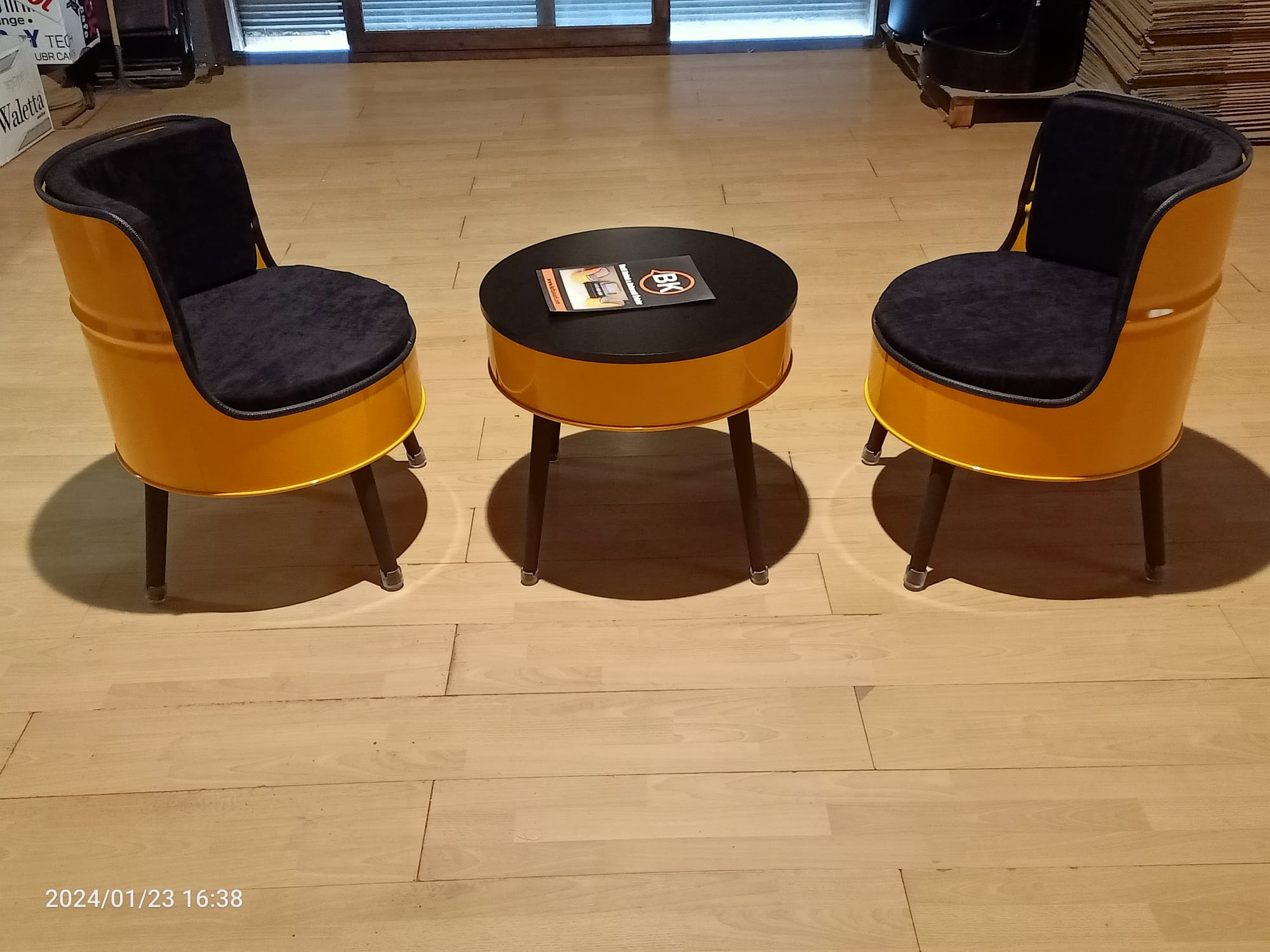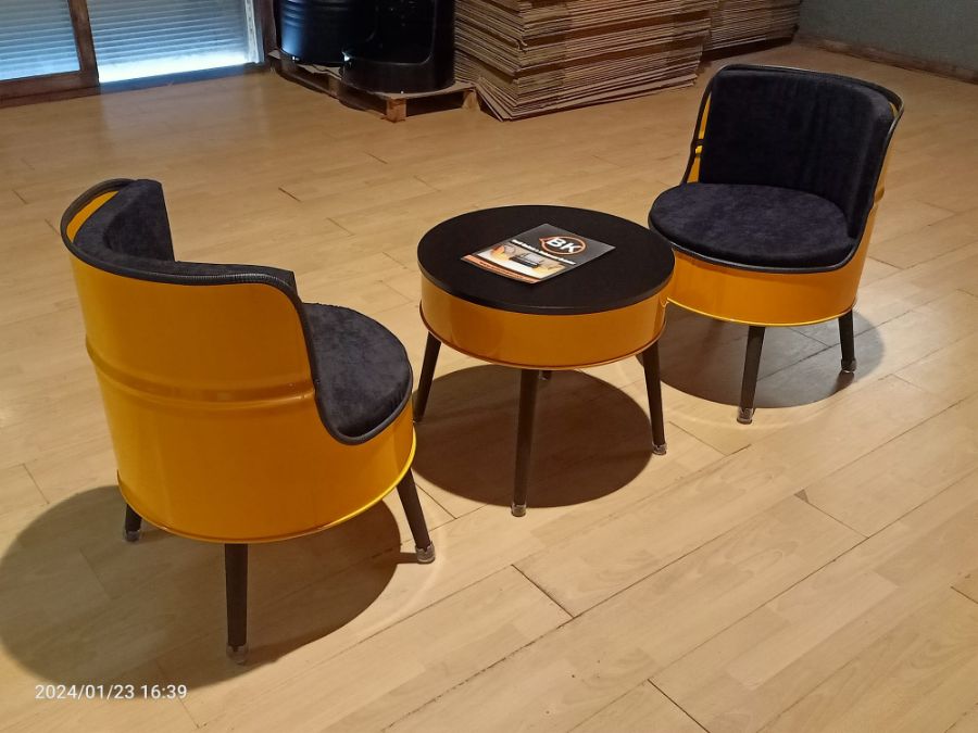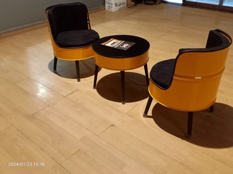 Varil bella koltuk takımı 2 adet tekli koltuk ve bir adet sehpadan oluşmaktadır.