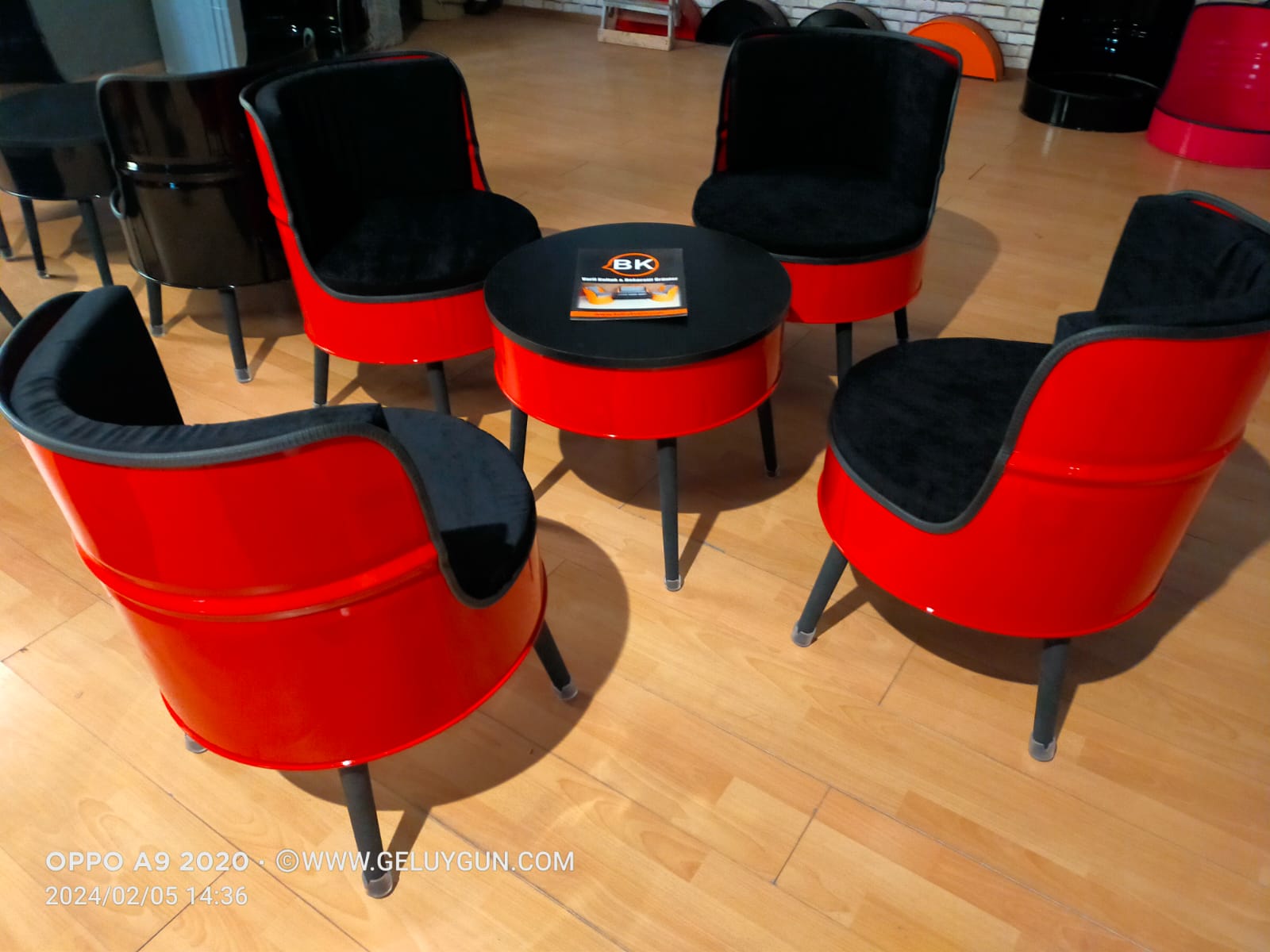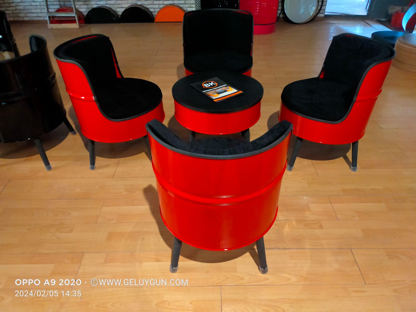 Varil bella koltuk takımı 4 adet tekli koltuk ve bir adet sehpadan oluşmaktadır.