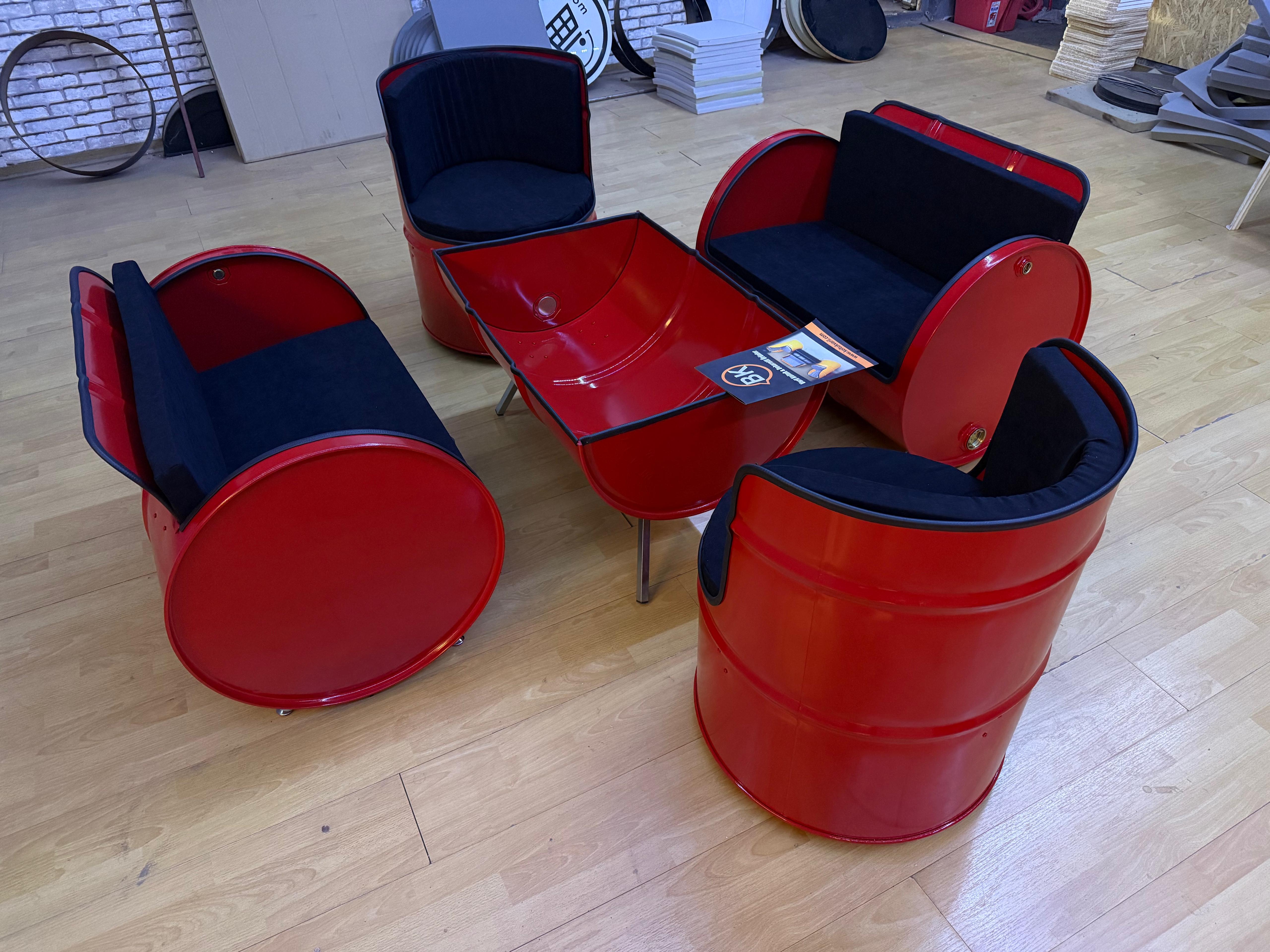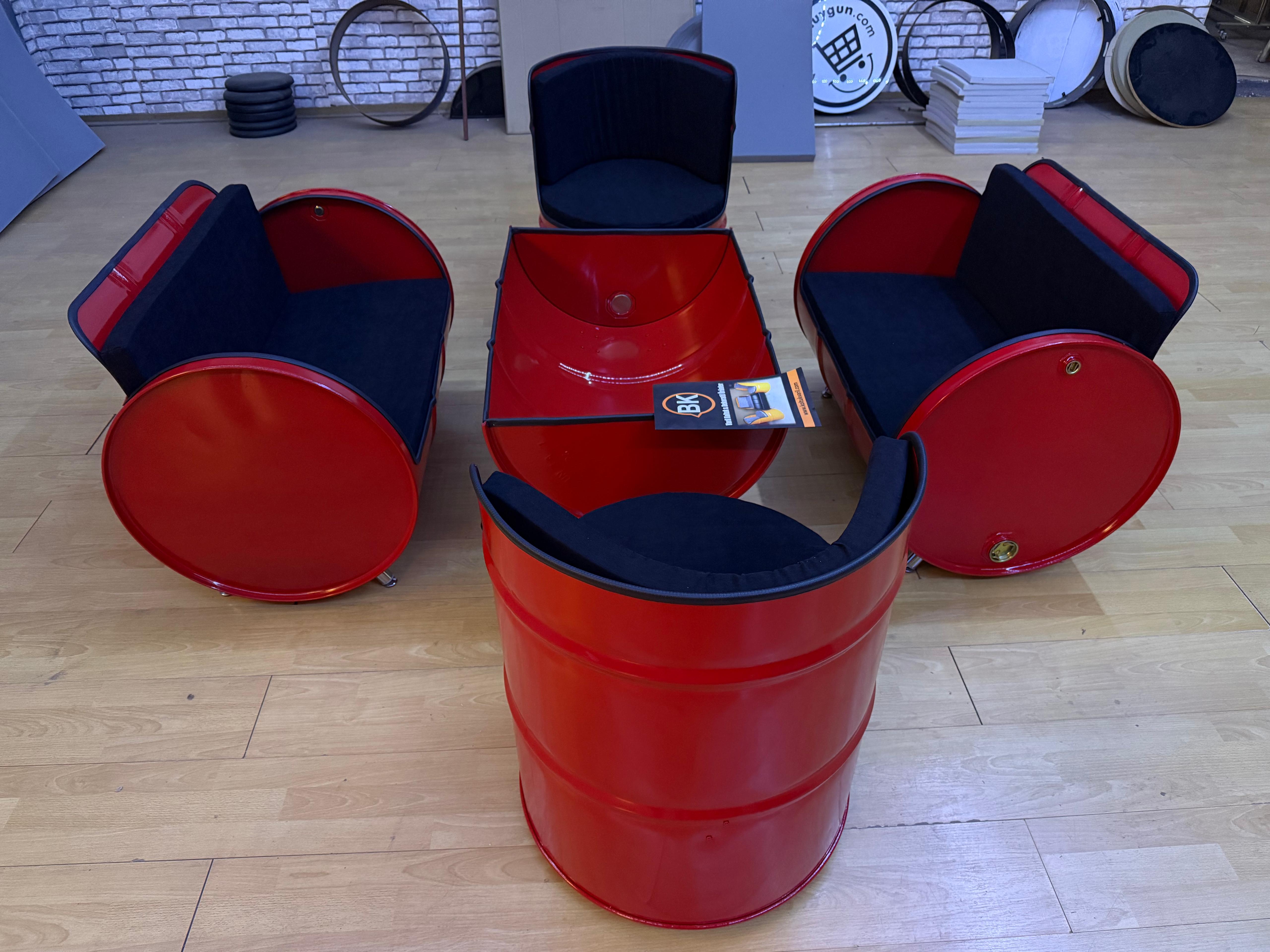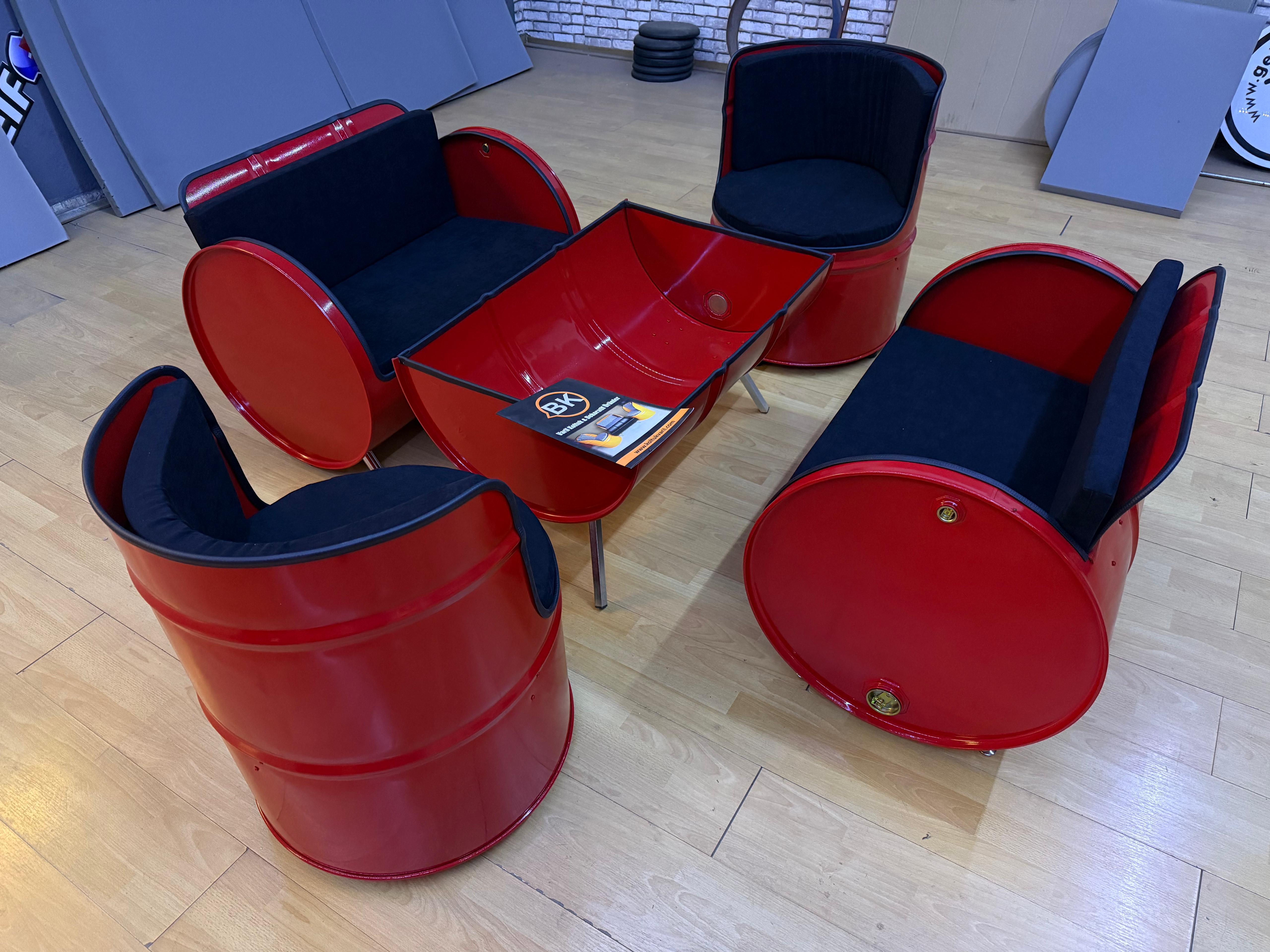 Varil Koltuk oturma takımı iki adet ikili, koltuk iki adet tekli koltuk ve bir adet sehpadan oluşmaktadır.(sehpa camsız şekil de gönderim yapılıyor)