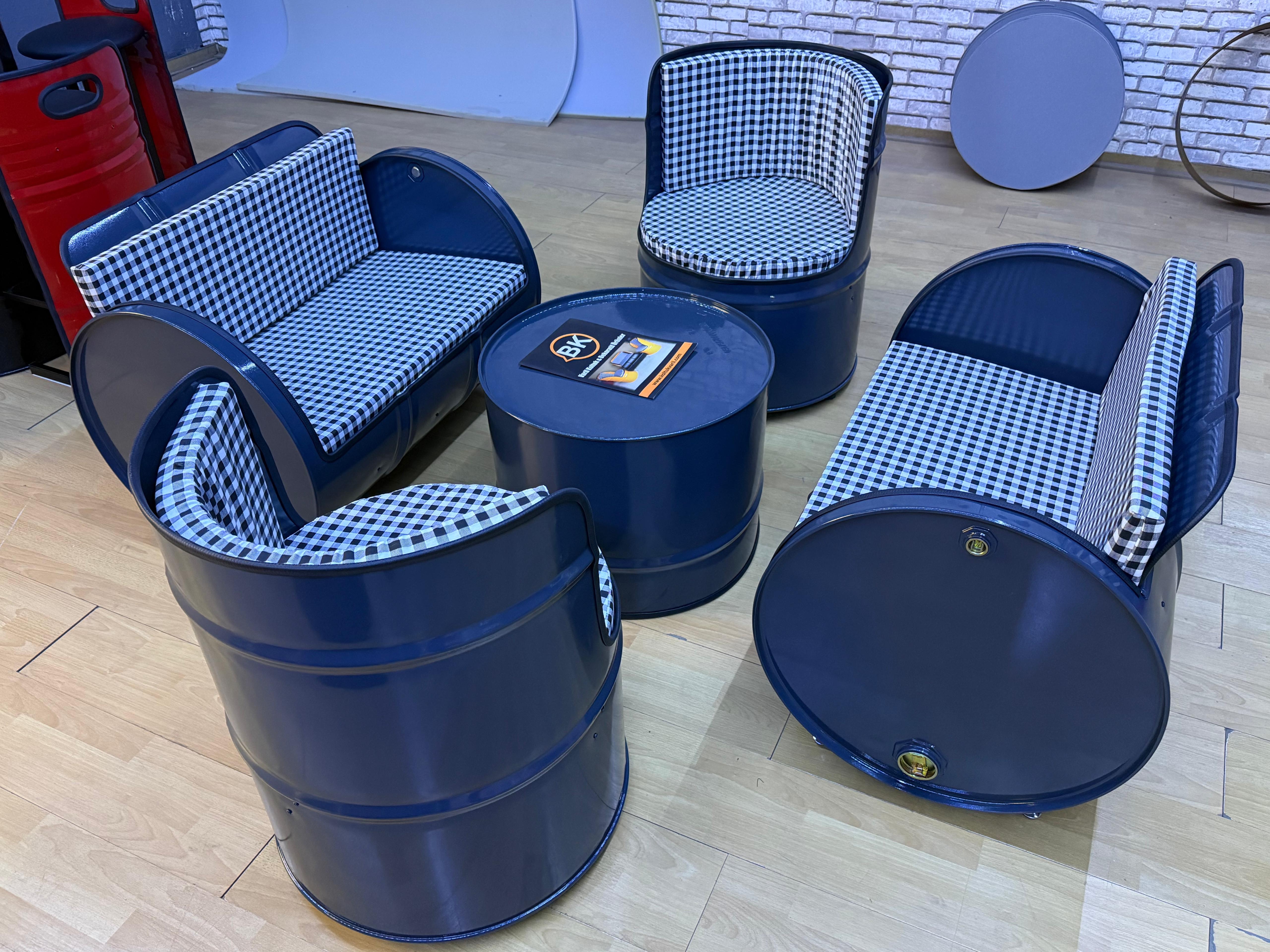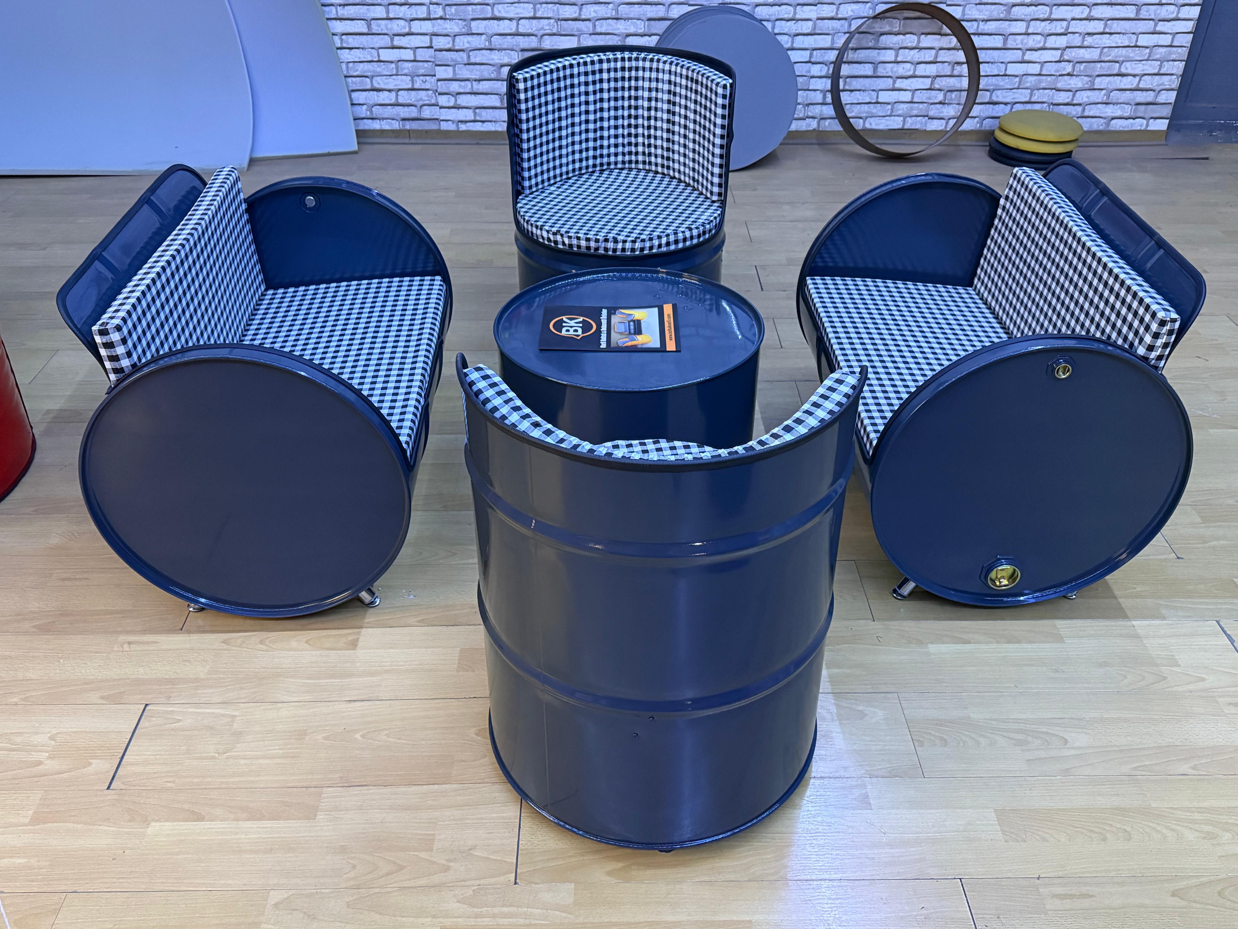 Varil Koltuk oturma takımı iki adet ikili, koltuk iki adet tekli koltuk ve bir adet sehpadan oluşmaktadır.