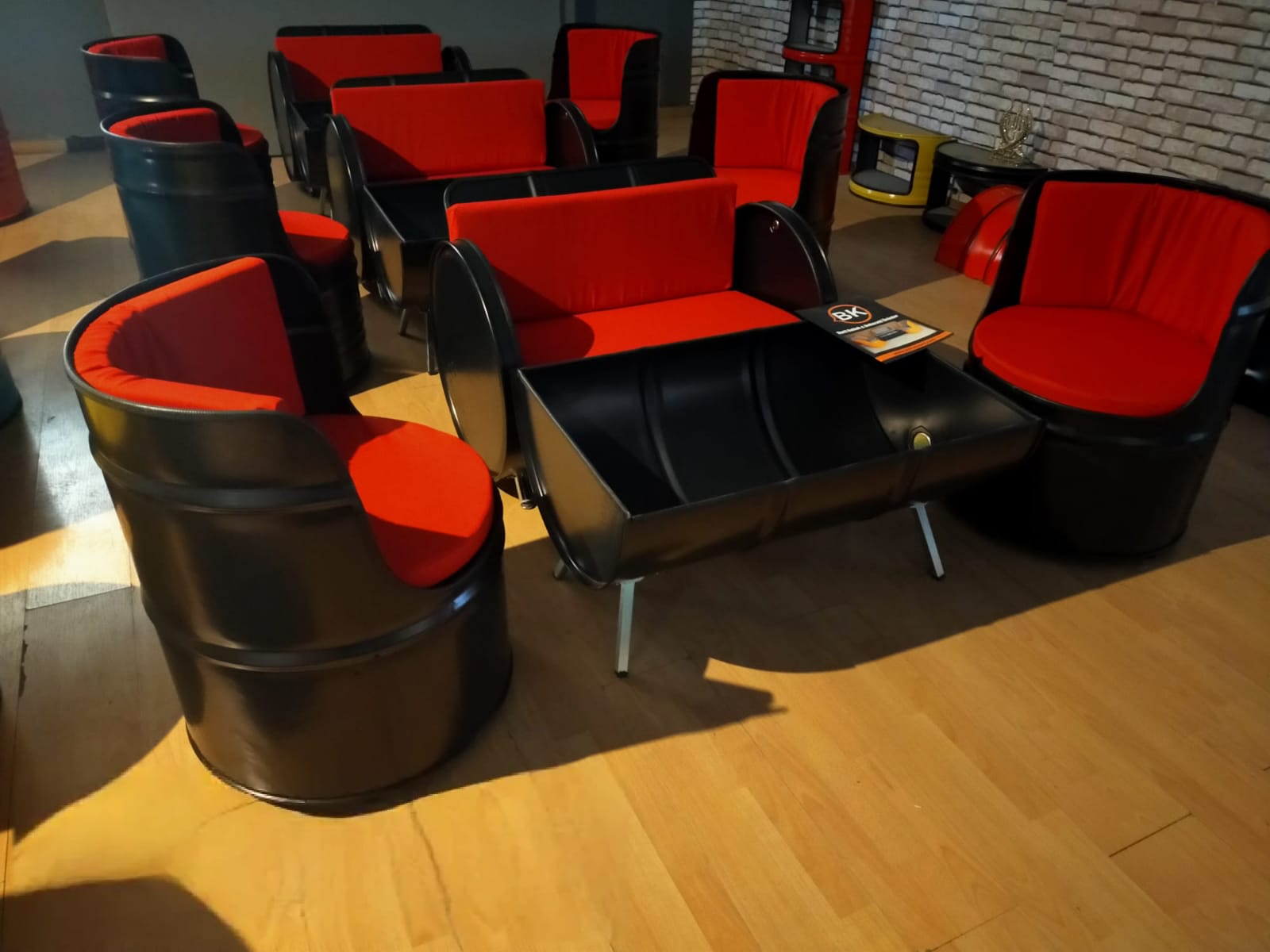 Varil Koltuk oturma takımı bir adet ikili, koltuk iki adet tekli koltuk ve bir adet sehpadan oluşmaktadır.(sehpa camsız gönderim yapılmaktadır)