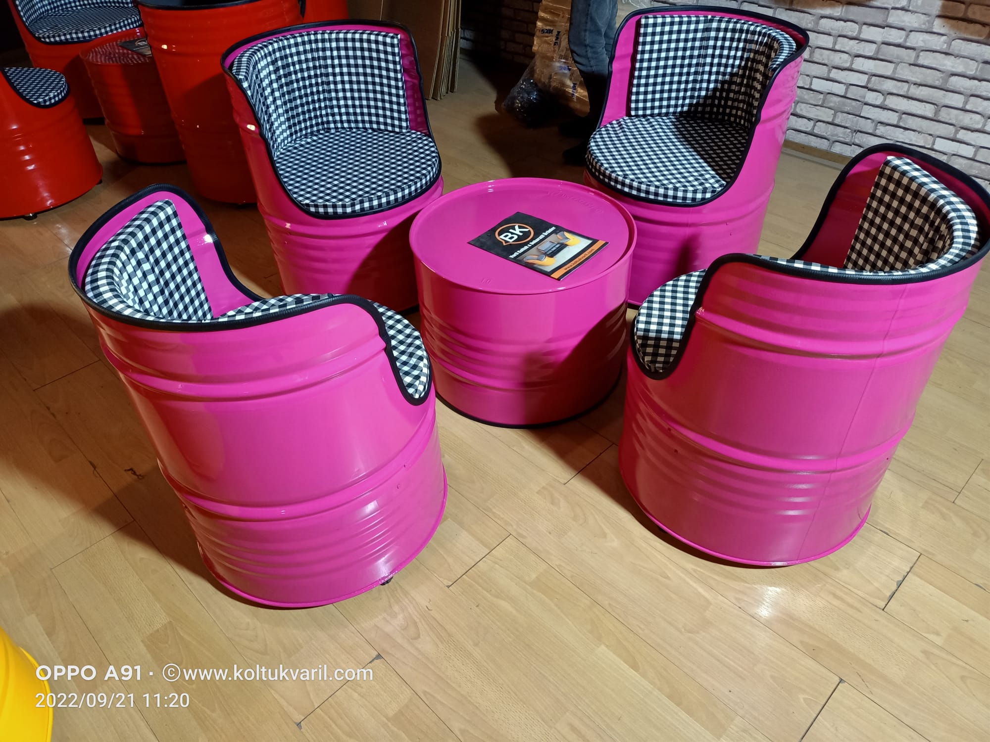 Varil Tekli Koltuk takımı lotus: dört adet tekli koltuk ve bir adet sehpadan oluşmaktadır.